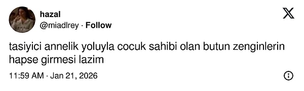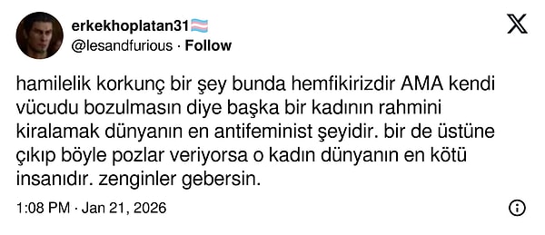 Bu paylaşım kısa müddette tartışmaların odak noktası oldu. Meghan Trainor, üçüncü kere anne olmasının akabinde bu kez taşıyıcı annelik sürecine dair ortaya atılan iddialarla gündeme geldi. Ünlü müzikçinin çocuklarını taşıyıcı anne yoluyla kucağına almasının gerisinde yatan nedenin, hamilelikte kilo almamak istemesi olduğu öne sürüldü.